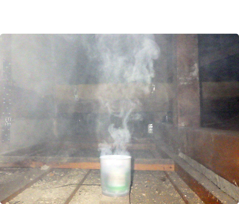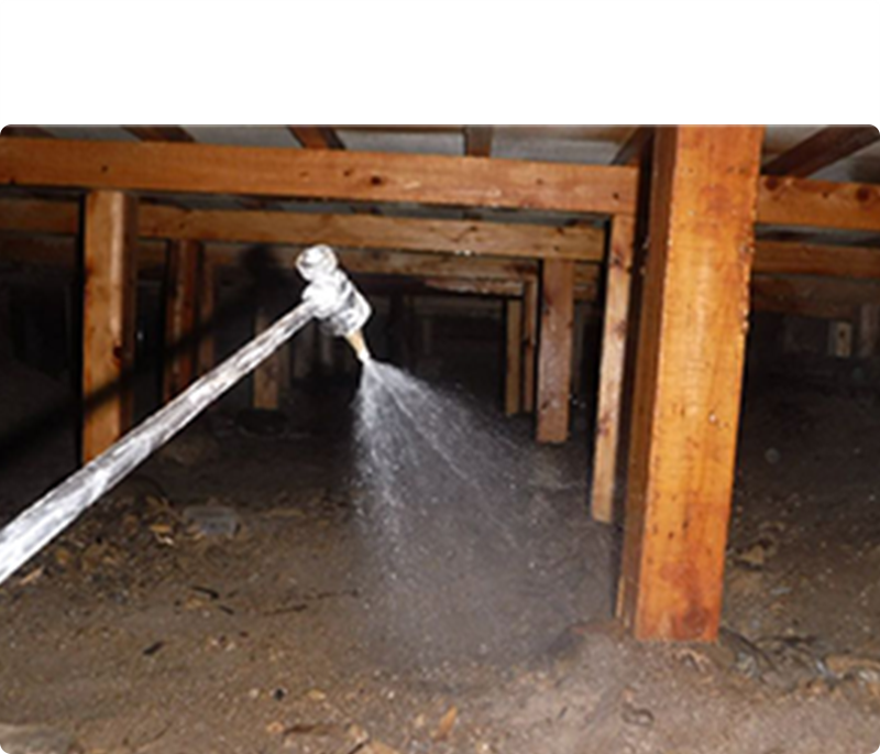 屋根裏や被害箇所に害虫駆除と消臭・抗菌効果のある薬剤を噴霧し、空間をしっかりと消毒します。