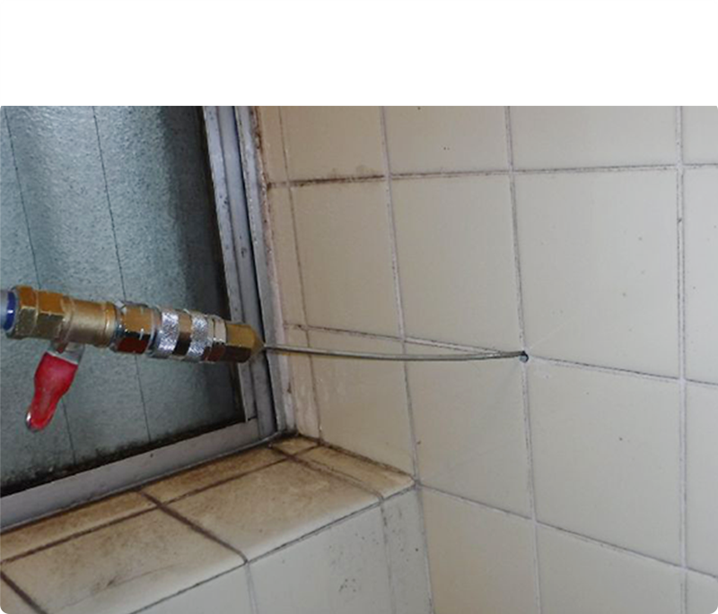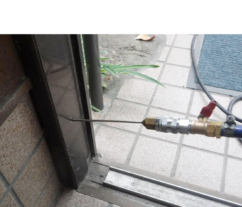 この処置では、木部や土間に直径4〜10mm程度の小さな穴をあけ、そこから薬剤を丁寧に注入。