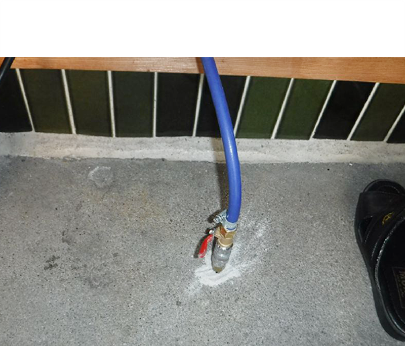 また、土間の中に埋まっている木部にまで薬剤を行き渡らせるために、必要に応じて適切な箇所に穴をあけ、薬剤を注入する処置を行います。