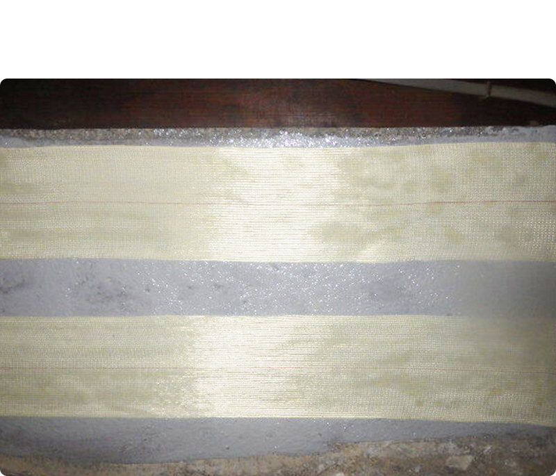高強度・高弾性の「アラミド繊維シート」と、エポキシ変性シリコン樹脂を主成分とした補修剤「パワーアラスト」を併用した補修方法です。